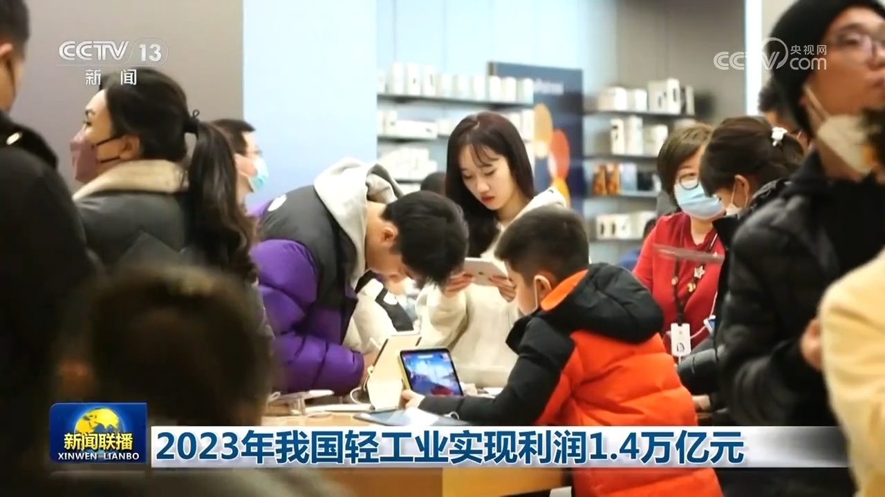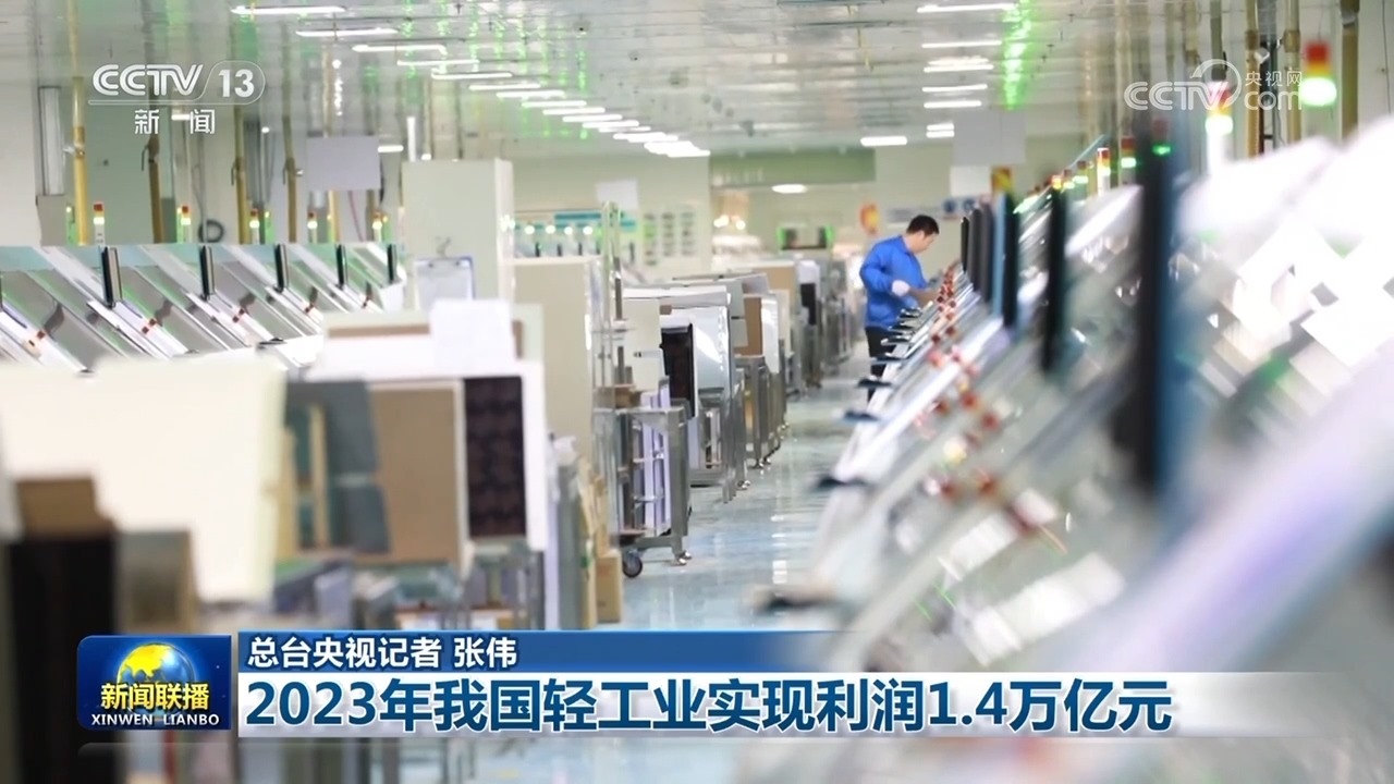 央視網(wǎng)消息(新聞聯(lián)播):中國輕工業(yè)聯(lián)合會發(fā)布數(shù)據(jù)顯示,2023年我國輕工業(yè)生產(chǎn)持續(xù)回升,市場穩(wěn)步復(fù)蘇,新動能行業(yè)較快增長,實現(xiàn)營業(yè)收入22.2萬億元,實現(xiàn)利潤1.4萬億元,同比增長3.8%。