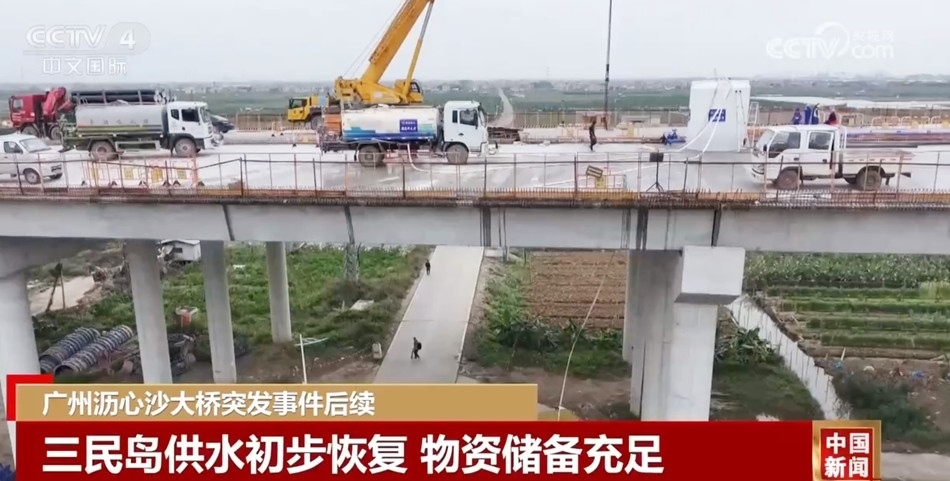 瀝心沙大橋突發(fā)事件還導致通往三民島的供水管斷裂,島上居民用水受到影響。經(jīng)過搶修,目前三民島供水已初步恢復,島上供電正常、物資儲備充足。