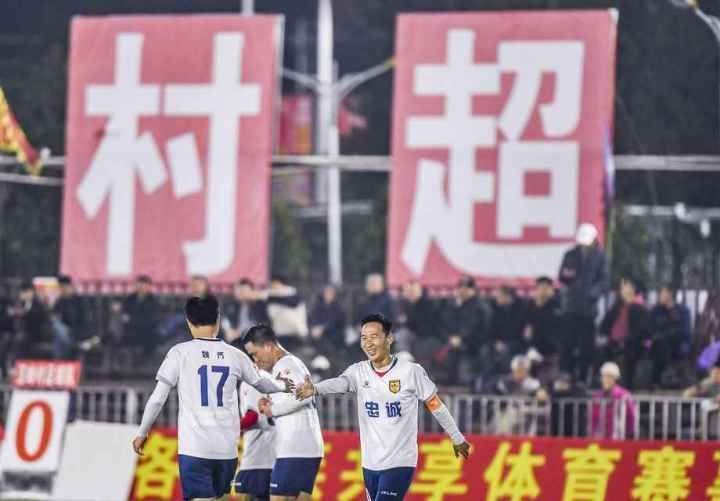2024年1月7日,“村超”上賽季射手王、忠誠(chéng)村球員董永恒(右)在進(jìn)球后和隊(duì)友慶祝。2024年貴州榕江(三寶侗寨)和美鄉(xiāng)村足球超級(jí)聯(lián)賽(“村超”)新賽季于1月6日在貴州省黔東南苗族侗族自治州榕江縣激情開賽。新賽季“村超”參賽隊(duì)伍實(shí)現(xiàn)大幅擴(kuò)容,從20支球隊(duì)增加到62支,共計(jì)將有1800余名球員參與。新華社記者 陶亮 攝