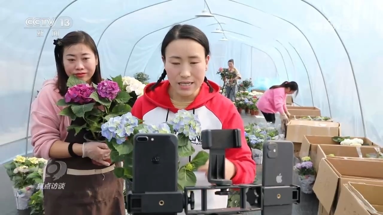 江蘇省宿遷市沭陽縣是全國聞名的“花木之鄉(xiāng)”,也是江蘇省面積最大的花木生產(chǎn)縣。近年來,沭陽進(jìn)一步完善“互聯(lián)網(wǎng)+三農(nóng)”模式,依托本地花木特色優(yōu)勢和電商先發(fā)優(yōu)勢,持續(xù)壯大花木電商,推動產(chǎn)業(yè)迭代升級。每天晚上,走進(jìn)沭陽縣新河鎮(zhèn)主播之家的盆景基地,都能看到一片熱鬧的場景。臺上一名拍賣師,臺下五十多名網(wǎng)絡(luò)主播同時(shí)直播,一邊與粉絲互動,一邊幫忙喊價(jià)。在沭陽的各個(gè)溫室大棚,也經(jīng)常能看到農(nóng)戶在帶貨直播,在這里,手機(jī)變身為“新農(nóng)具”、直播變成了“新農(nóng)活”。