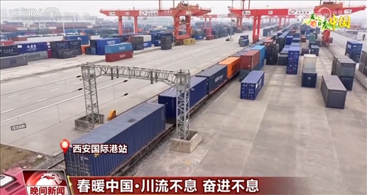 忙碌起來的不只是港口,西安國際港站汽笛聲聲、班列轟鳴,龍門吊正加緊作業(yè)。這輛滿載光伏設(shè)備和新能源汽車等貨物的中歐班列,預(yù)計(jì)9天后將抵達(dá)目的地——烏茲別克斯坦塔什干。在這里,平均每1小時(shí)40分鐘就有一列中歐班列出發(fā)或到達(dá)?!耙粠б宦贰苯ㄔO(shè)讓西部成為開放前沿,開放是一種理念、一條路,更是一種胸襟。?
