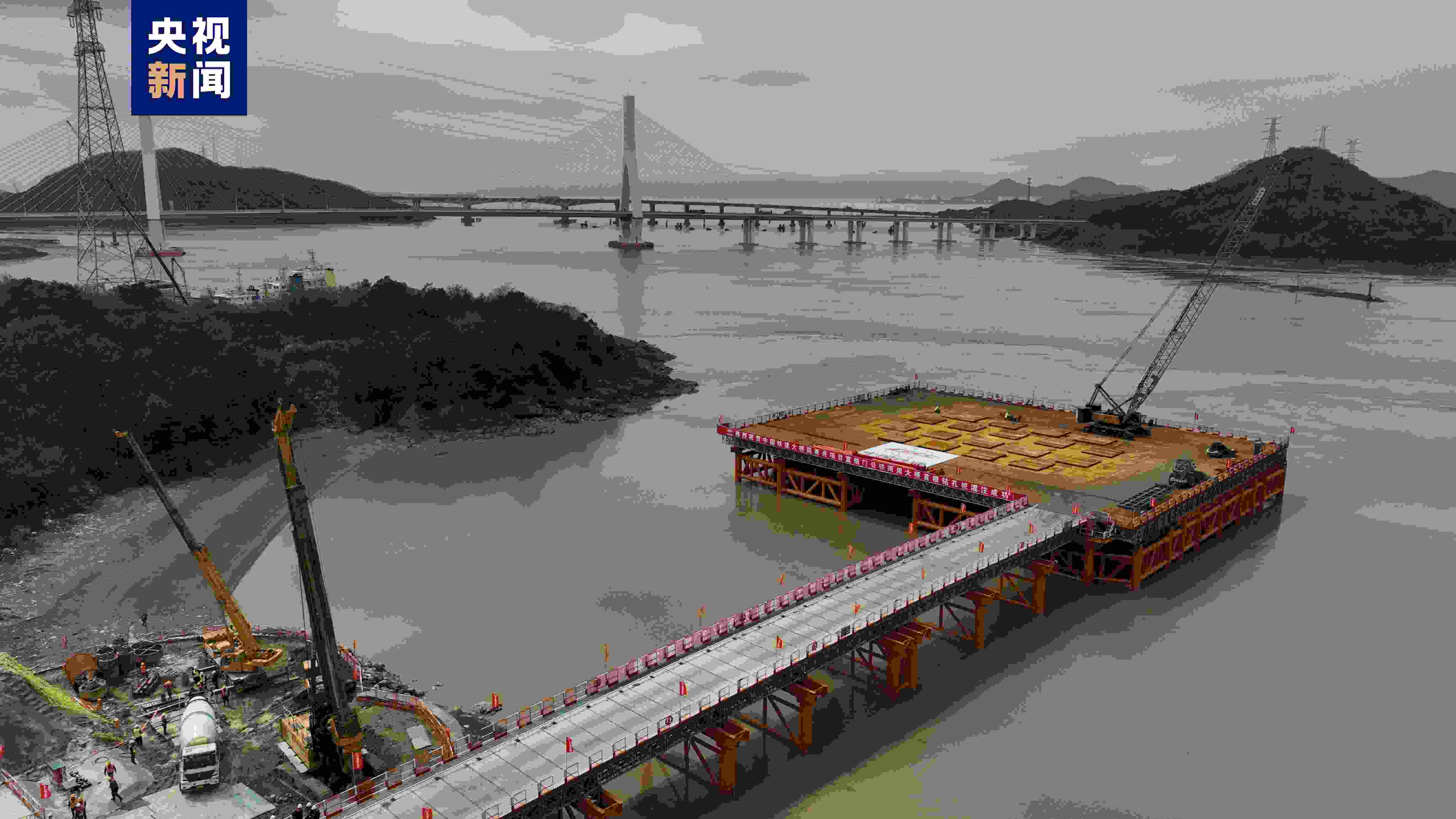 在舟山響礁門山咀區(qū)域,隨著最后一方混凝土灌入樁長(zhǎng)10米,樁徑2米的鉆孔樁中,甬舟鐵路富翅門公鐵兩用大橋首根樁基灌注完成,計(jì)劃于今年完成全橋樁基礎(chǔ)施工。