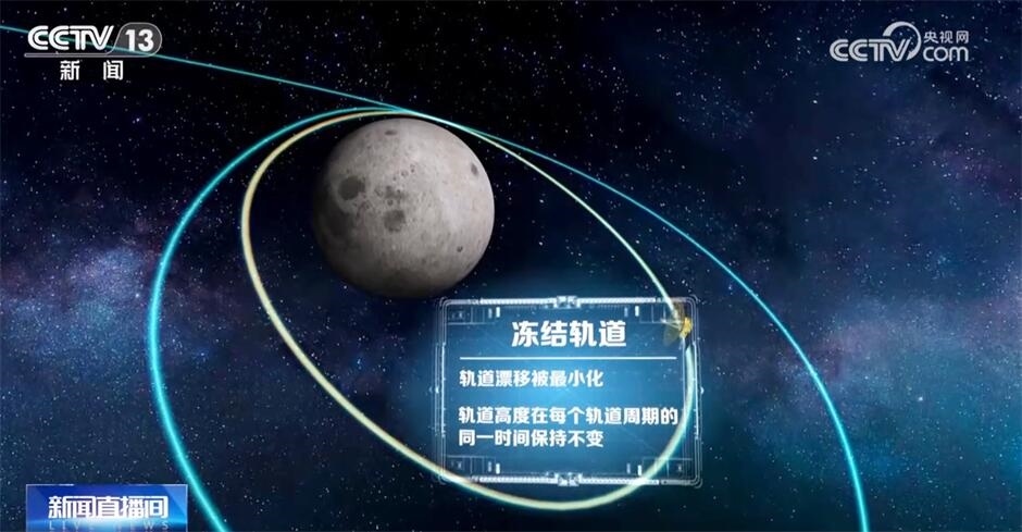 剛才提到了環(huán)月大橢圓凍結(jié)軌道,那什么是凍結(jié)軌道?所謂凍結(jié)軌道是一種特殊的航天器軌道,在這類軌道上運(yùn)行的航天器,通過恰當(dāng)?shù)卦O(shè)計(jì)軌道參數(shù),軌道漂移可以被最小化。通常位于這種軌道上的衛(wèi)星在很長(zhǎng)一段時(shí)間內(nèi),其軌道高度在每個(gè)軌道周期的同一時(shí)間是保持不變的。因此,一旦進(jìn)入這個(gè)軌道,鵲橋二號(hào)將最大程度地節(jié)省燃料,能夠保證它的軌道的遠(yuǎn)月點(diǎn)一直位于月球南極區(qū)域上方,從而確保了它在為期8年的設(shè)計(jì)壽命中,長(zhǎng)時(shí)間、穩(wěn)定地支持后續(xù)南極地區(qū)的探月任務(wù)。