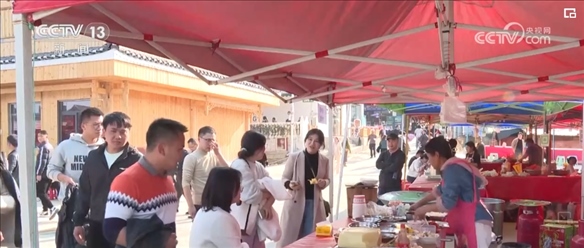 在球場附近,一些商鋪和攤位的“村BA”非遺集市也在3月22日開市。廣大球迷和游客可以在比賽間隙,就近品嘗來自貴州各地的美食,感受豐富多彩的非遺文化。集市還專門為附近村民預(yù)留了30個攤位,幫助他們在家門口創(chuàng)業(yè)、就業(yè)。