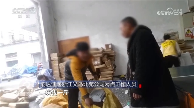 那么,涉事公司的快遞網(wǎng)點(diǎn)到底存不存在這種情況呢?記者進(jìn)行了實(shí)地探訪。在快遞網(wǎng)點(diǎn)的退件區(qū),現(xiàn)場(chǎng)有穿著“北苑韻達(dá)”字樣服裝的工作人員正在作業(yè)。工作人員告訴記者,退件用車(chē)?yán)撸辉X(qián)一斤賣(mài)掉。