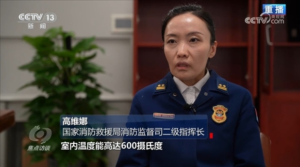 國(guó)家消防救援局消防監(jiān)督司二級(jí)指揮長(zhǎng)高維娜:“30秒鐘就能達(dá)到燃燒狀態(tài),3分鐘火焰中心部位的溫度能達(dá)到1200攝氏度。如果是在室內(nèi),室內(nèi)溫度能高達(dá)600攝氏度,會(huì)產(chǎn)生大量有毒煙氣。目前,我們國(guó)家沒有專門針對(duì)電動(dòng)自行車火災(zāi)撲救的滅火藥劑?!?/p>