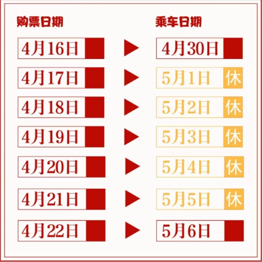 ·“五一”假期火車票4月17日開(kāi)始發(fā)售。