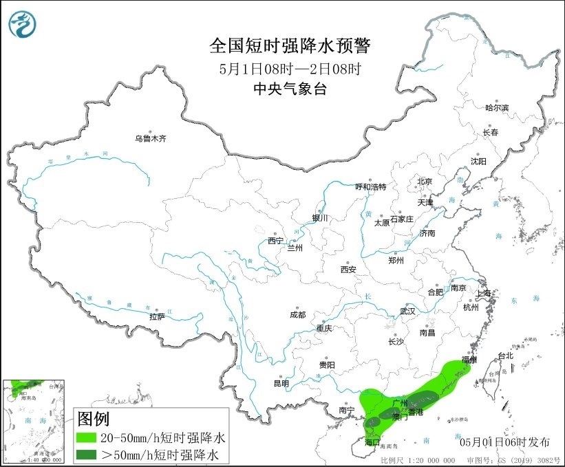 央視網(wǎng)消息:中央氣象臺5月1日06時發(fā)布強(qiáng)對流天氣藍(lán)色預(yù)警:預(yù)計(jì)5月1日08時至2日08時,廣東南部及沿岸海域等地的部分地區(qū)將有8-10級雷暴大風(fēng)或冰雹天氣,最大風(fēng)力11級以上;福建東南部、廣西東部、廣東中南部、海南島東北部及華南沿岸海域等地的部分地區(qū)將有小時雨量大于20毫米的短時強(qiáng)降水天氣,其中廣東南部及沿岸海域等地局地最大小時雨量大于50毫米,最大可達(dá)70毫米以上。