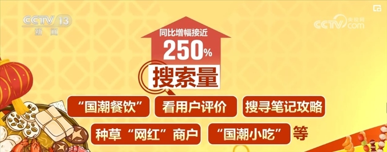 2024年以來,不少用戶上平臺(tái)搜索“國(guó)潮餐飲”,看用戶評(píng)價(jià)、搜尋筆記攻略、種草“網(wǎng)紅”商戶,“國(guó)潮小吃”等搜索量同比增幅接近250%。同時(shí),平臺(tái)上“國(guó)潮”餐飲商戶數(shù)同比增幅接近500%,團(tuán)購(gòu)訂單量大漲550%。