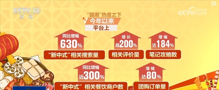 “國(guó)潮”熱度之下,2024年以來,平臺(tái)上“新中式”相關(guān)搜索量同比增幅也達(dá)到了630%,相關(guān)評(píng)價(jià)量增長(zhǎng)超200%,筆記攻略數(shù)增幅達(dá)184%。“新中式”相關(guān)餐飲商戶數(shù)同比增幅近300%,團(tuán)購(gòu)訂單量增幅達(dá)80%。