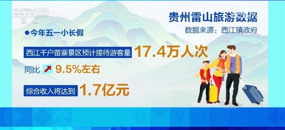 今年“五一”小長假,西江千戶苗寨景區(qū)預(yù)計(jì)接待游客量達(dá)17.4萬人次,同比增長9.5%左右,綜合收入將達(dá)到1.7億元。依托旅拍行業(yè),一條集美妝、跟拍、服裝租賃、首飾定制等于一體的產(chǎn)業(yè)鏈正在加速生成,文旅發(fā)展還帶動了西江千戶苗寨及雷山縣周邊村寨兩萬多人就業(yè)。