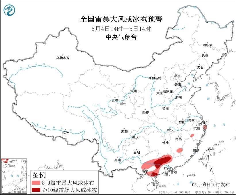 央視網(wǎng)消息:中央氣象臺5月4日10時繼續(xù)發(fā)布強對流天氣藍色預警,預計5月4日14時至5日14時,廣西中東部、廣東西部、江西南部等地的部分地區(qū)將有8-10級雷暴大風或冰雹天氣,其中廣西東部和東南部沿海、廣東西北部和西南部沿海等地的局地將有10級以上雷暴大風,最大風力可達11級;湖南南部、江西、福建西部和東南部、貴州西南部、廣西中東部、廣東、海南島北部等地的部分地區(qū)將有小時雨量大于20毫米的短時強降水天氣,其中廣西東部、廣東中西部等地的局地最大小時雨量大于50毫米,最大可達80毫米以上。