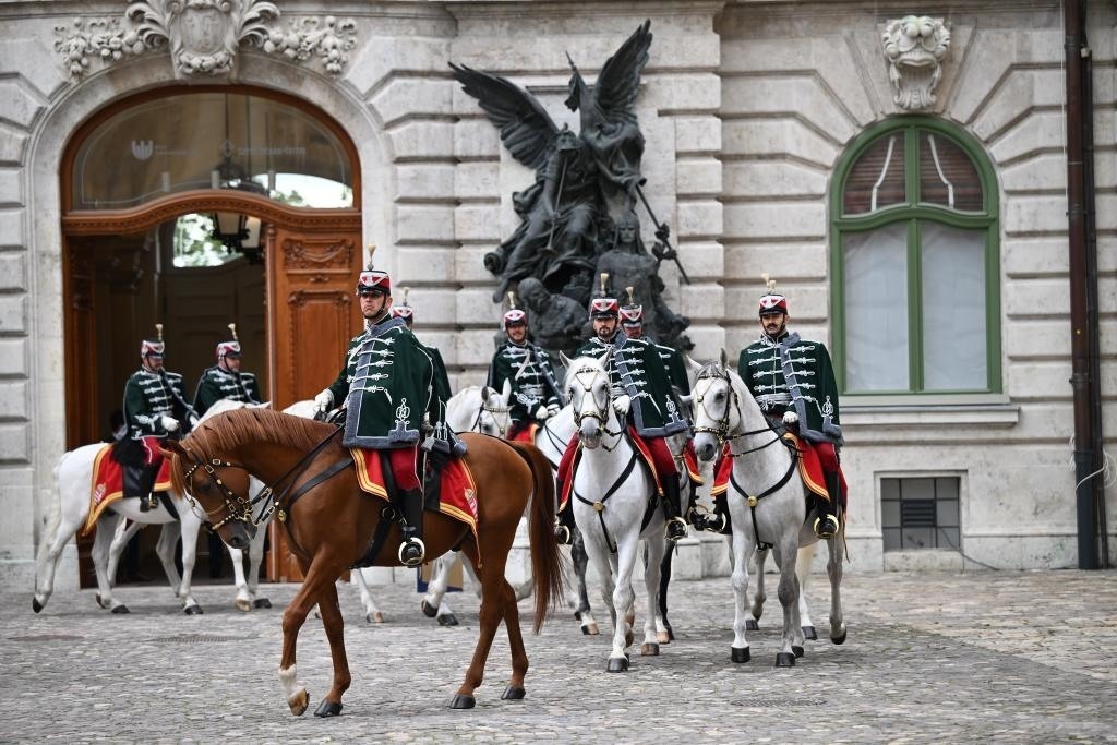 初夏時(shí)節(jié)的布達(dá)佩斯陽(yáng)光明媚,古老宏偉的布達(dá)王宮莊嚴(yán)矗立,中匈兩國(guó)國(guó)旗相映成輝。習(xí)近平和夫人彭麗媛乘坐的國(guó)賓車隊(duì)在匈牙利禮賓馬隊(duì)護(hù)衛(wèi)下緩緩駛?cè)氩歼_(dá)王宮內(nèi)庭。舒尤克總統(tǒng)夫婦和歐爾班總理夫婦熱情迎接。