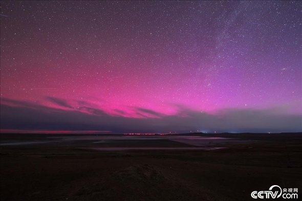 5月11日凌晨,隨著太陽強耀斑的再次爆發(fā),內(nèi)蒙古錫林浩特市上空出現(xiàn)絢麗的洋紅色極光。