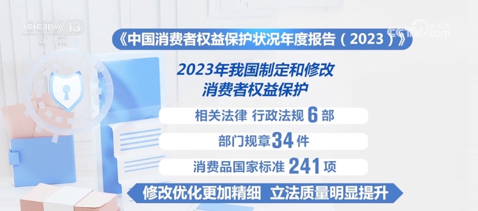 年度報(bào)告顯示,2023年我國制定和修改了消費(fèi)者權(quán)益保護(hù)相關(guān)法律、行政法規(guī)6部、部門規(guī)章34件、消費(fèi)品國家標(biāo)準(zhǔn)241項(xiàng),修改優(yōu)化更加精細(xì),立法質(zhì)量明顯提升。