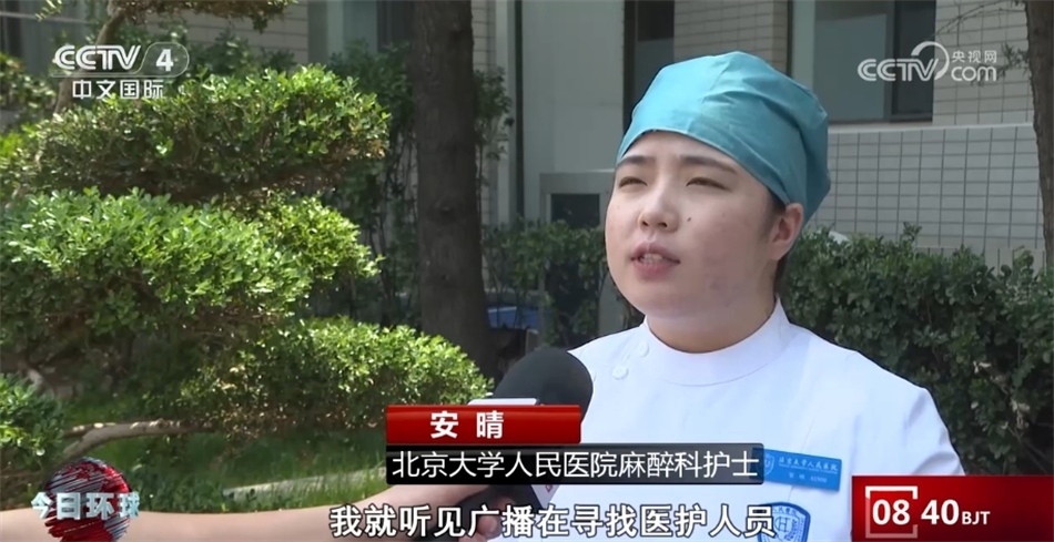 北京大學人民醫(yī)院麻醉科護士安晴稱:“進了地鐵閘機門之后,我就聽見廣播在尋找醫(yī)護人員 ,我就趕緊從樓梯走了下去。當時患者已經(jīng)沒有反應了,已經(jīng)呼之不應了,我就立馬上前查看了一下她的瞳孔,當時瞳孔已經(jīng)散大了,然后摸了一下頸動脈的搏動,也是消失的,我就判定她為心臟驟停,然后緊急對她進行了胸外按壓?!?/p>