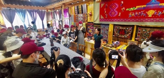 在廣西非遺形象體驗(yàn)店“湘光織錦坊”的研學(xué)活動(dòng)現(xiàn)場。(受訪者供圖)