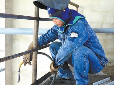 一手持焊槍,一手拿焊絲,焊花飛濺,站在腳手架上的曾正超汗如雨下。切掉焊縫之后,焊條卡在接口中間,“刺啦”聲中,兩節(jié)管道嚴(yán)絲合縫地焊接到一起?!斑@種碳鋼管對焊接工藝要求高,管道厚度僅6毫米,焊接時得格外精細(xì)?!痹钢馁M(fèi)近兩小時才修好的一處氧氣管說。