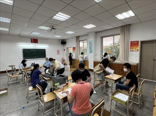 廣州市越秀區(qū)教育局現(xiàn)場(chǎng)審核返區(qū)生辦理材料,采用“提前網(wǎng)上預(yù)約、現(xiàn)場(chǎng)分批辦理”的方式進(jìn)行。廣州市越秀區(qū)教育局供圖