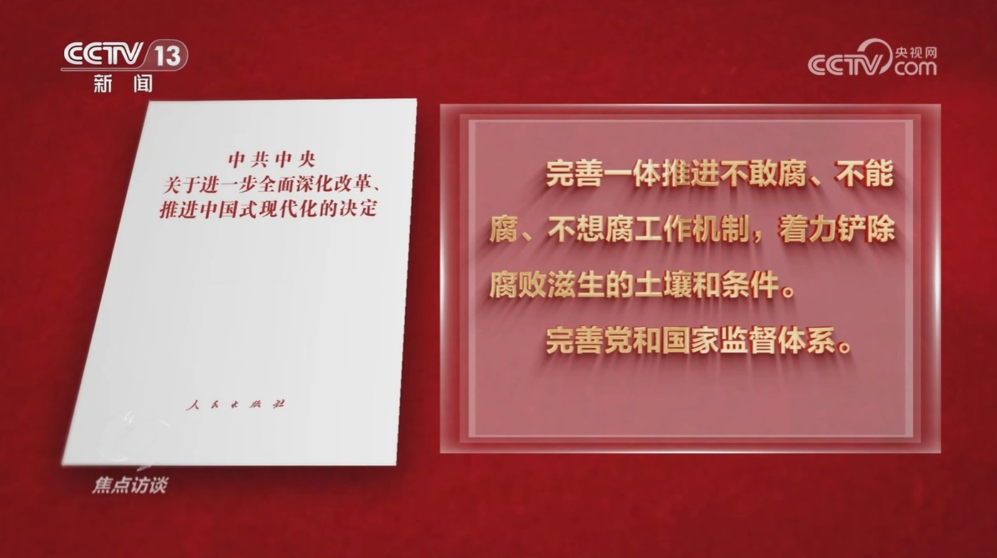 如何提高黨對進一步全面深化改革、推進中國式現(xiàn)代化的領(lǐng)導(dǎo)水平,《決定》部署的第三方面重點是,深入推進黨風(fēng)廉政建設(shè)和反腐敗斗爭。