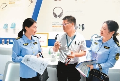 湖北省咸寧市通城縣立足企業(yè)創(chuàng)新創(chuàng)造,持續(xù)優(yōu)化營商環(huán)境。目前,該縣已建成省級知識產(chǎn)權(quán)保護(hù)站2個,幫助企業(yè)更好解決專利服務(wù)、知識產(chǎn)權(quán)融資等需求。圖為該縣經(jīng)濟(jì)開發(fā)區(qū)一家民營企業(yè)內(nèi),市場監(jiān)管工作人員在了解企業(yè)專利產(chǎn)品生產(chǎn)狀況。劉建平攝(人民視覺)