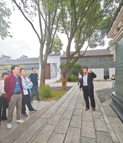 安徽桐城文昌街道六尺巷社區(qū)黨總支書(shū)記張?jiān)艦橛慰椭v述六尺巷的故事。本報(bào)記者 李俊杰攝