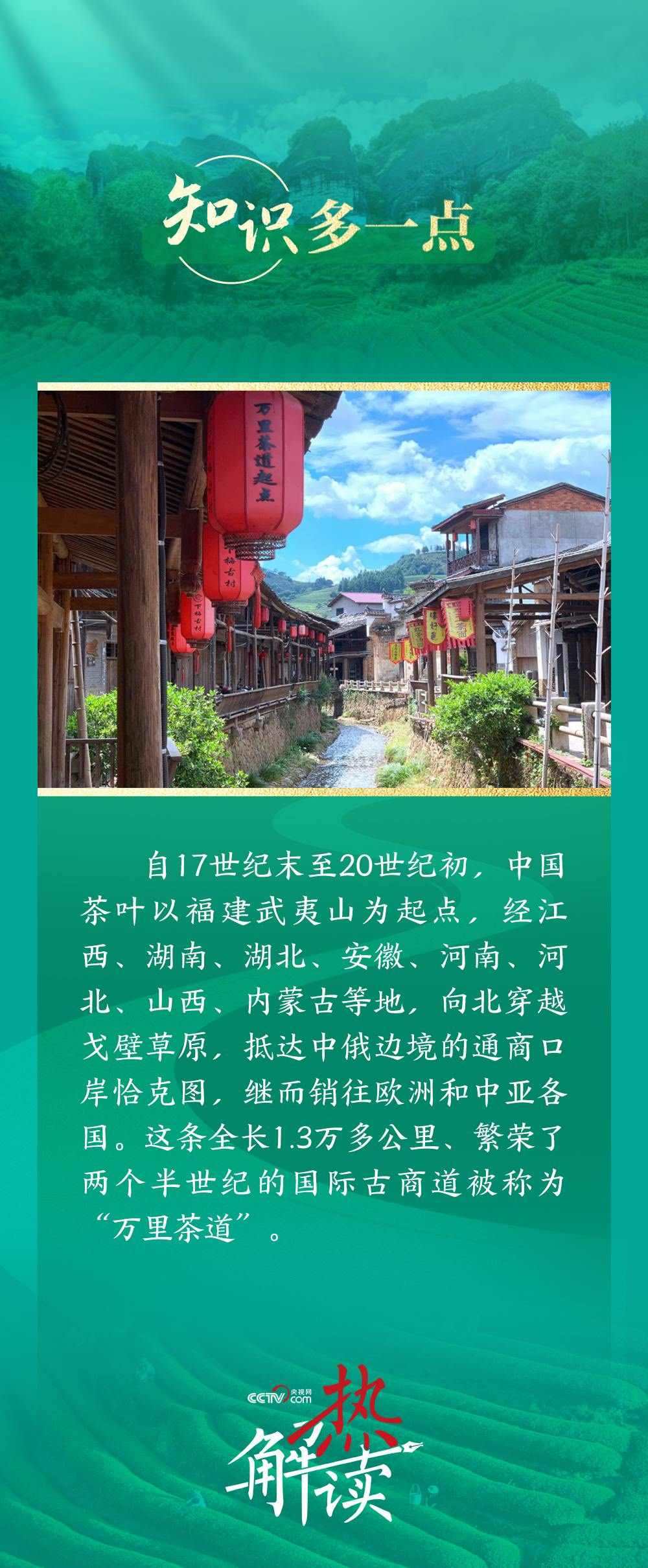 茶葉香濃,古道滄桑。大約400年前,伴隨俄羅斯市場茶葉需求不斷增加和中俄茶葉貿(mào)易逐漸興盛,中國晉商抓住機遇,貫通了南起我國武夷山、北達俄羅斯圣彼得堡的茶葉貿(mào)易之路。這條綿延1.3萬多公里,縱貫中國南北、橫跨亞歐大陸的古老商道,正是習(xí)主席提及的“萬里茶道”。