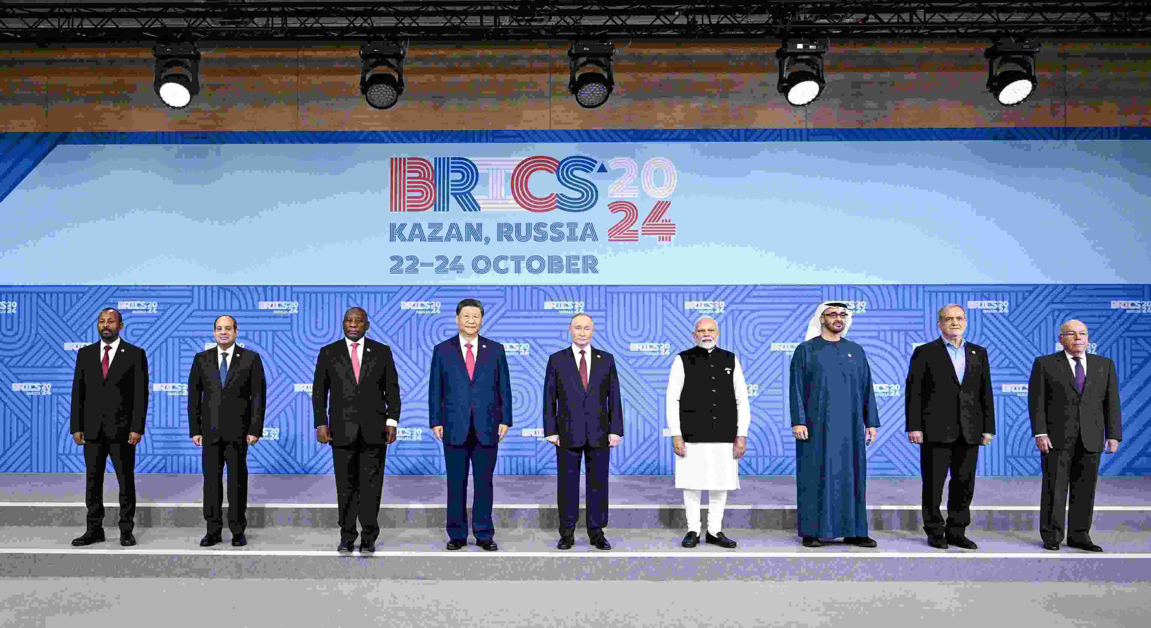 △當?shù)貢r間2024年10月24日上午,國家主席習(xí)近平在喀山會展中心出席金磚成員國、嘉賓國領(lǐng)導(dǎo)人和國際組織負責人集體合影。