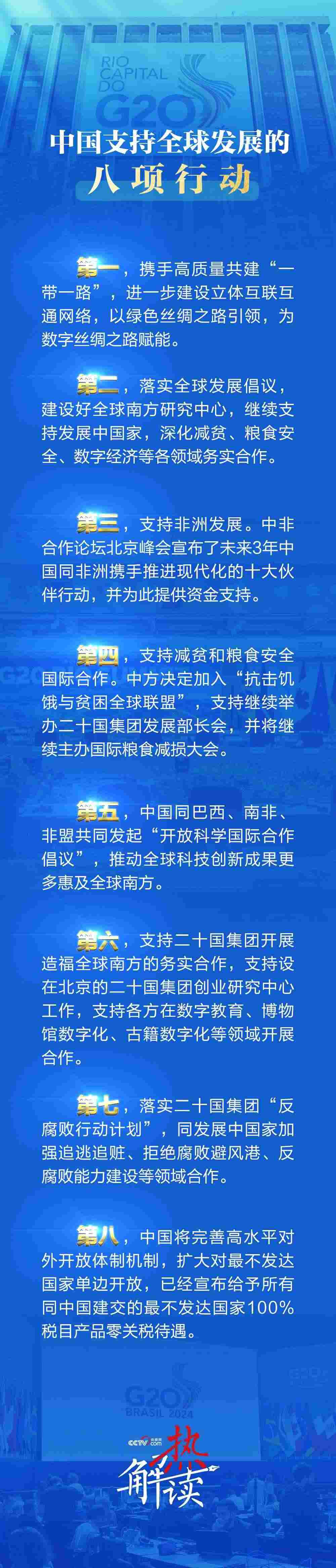 在二十國集團領(lǐng)導(dǎo)人第十九次峰會第一階段會議上,習(xí)近平主席發(fā)表重要講話,宣布中國支持全球發(fā)展的八項行動。
