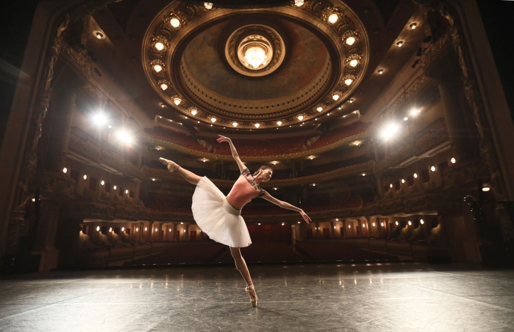 2019年5月24日,中央芭蕾舞團演員方夢穎在巴西里約熱內(nèi)盧市政劇院排練。中央芭蕾舞團攜《大紅燈籠高高掛》來到巴西,為當(dāng)?shù)孛癖姭I(xiàn)上帶有濃郁中國元素的精彩表演。