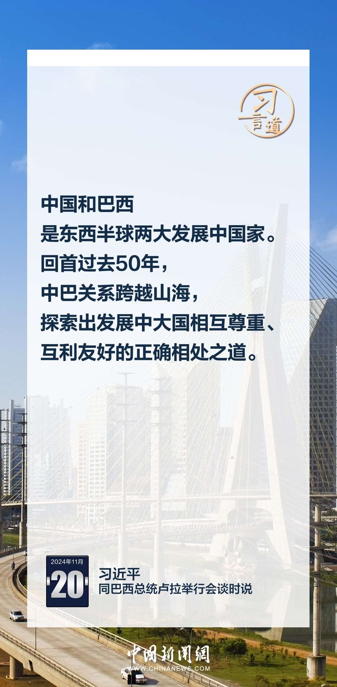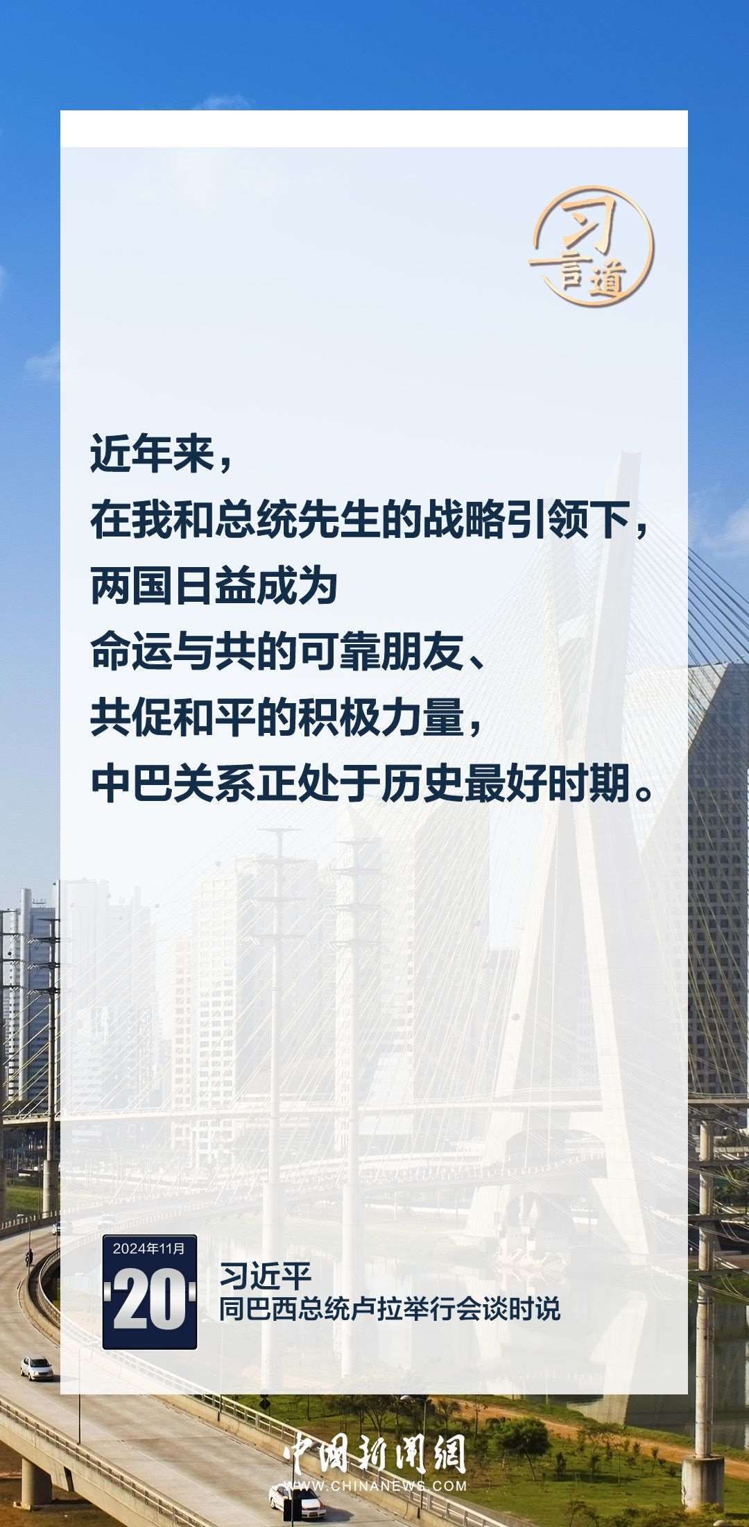 當(dāng)?shù)貢r間11月20日,中國國家主席習(xí)近平在巴西利亞總統(tǒng)官邸同巴西總統(tǒng)盧拉舉行會談。習(xí)近平指出——