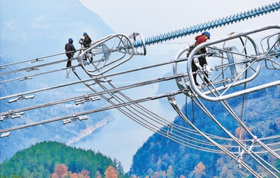 ——建設(shè)險(xiǎn),湍急大河上架線。