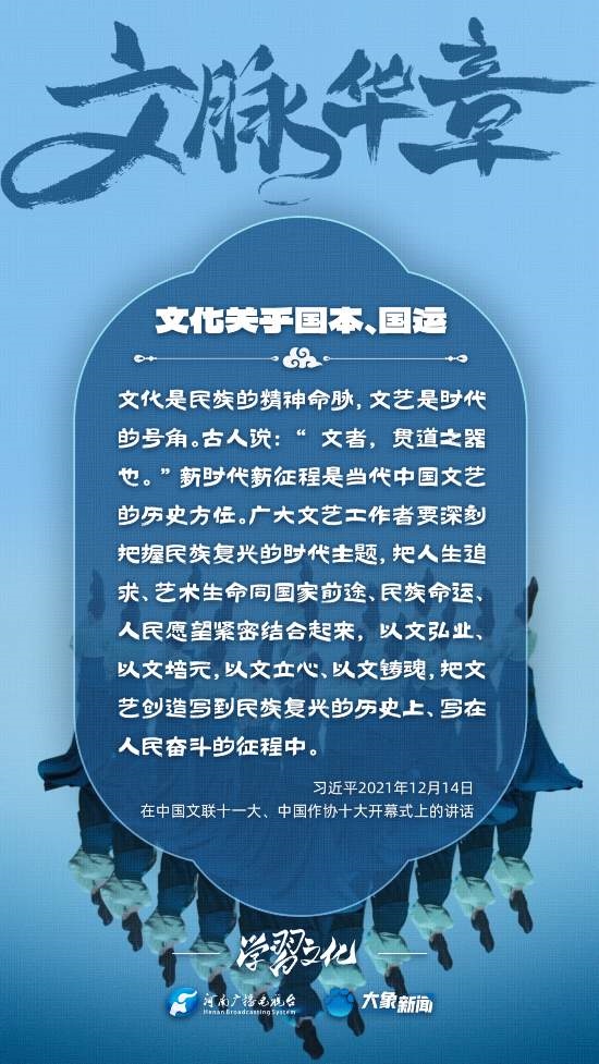習(xí)近平總書記高度重視文化之于國家、之于民族的重大意義,強調(diào):文化是一個國家、一個民族的靈魂。文化興國運興,文化強民族強。沒有高度的文化自信,沒有文化的繁榮興盛,就沒有中華民族偉大復(fù)興。大象新聞梳理了習(xí)近平總書記的系列重要論述,我們一起學(xué)習(xí)。