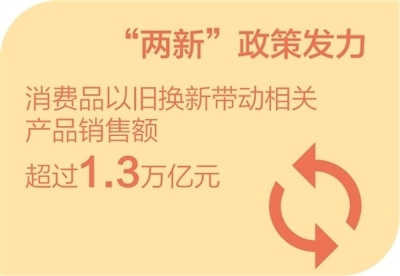 商務(wù)部新聞發(fā)言人何詠前:中央經(jīng)濟工作會議提出,大力提振消費。初步統(tǒng)計,2024年,全國汽車以舊換新超過680萬輛,超3600萬名消費者購買8大類家電以舊換新產(chǎn)品超過5600萬臺,家裝廚衛(wèi)“煥新”補貼產(chǎn)品約6000萬件,電動自行車以舊換新超過138萬輛。消費品以舊換新帶動相關(guān)產(chǎn)品銷售額超過1.3萬億元。
