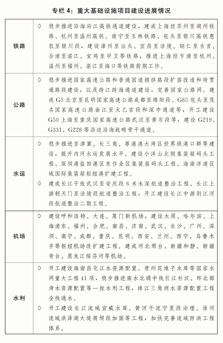 五是加快完善現(xiàn)代化基礎(chǔ)設(shè)施體系。高質(zhì)量推進(jìn)川藏鐵路等重大項(xiàng)目建設(shè),加快構(gòu)建國(guó)家水網(wǎng)工程體系,高水平共建西部陸海新通道。深入實(shí)施降低全社會(huì)物流成本專項(xiàng)行動(dòng)。持續(xù)推進(jìn)國(guó)家物流樞紐、國(guó)家骨干冷鏈物流基地、國(guó)家綜合貨運(yùn)樞紐體系、大宗商品資源配置樞紐等布局建設(shè)。加快完善應(yīng)急物流體系。深入推進(jìn)公路水路交通基礎(chǔ)設(shè)施數(shù)字化轉(zhuǎn)型升級(jí)。推動(dòng)各種運(yùn)輸方式規(guī)則標(biāo)準(zhǔn)統(tǒng)一協(xié)同,加快多式聯(lián)運(yùn)“一單制、一箱制”應(yīng)用。