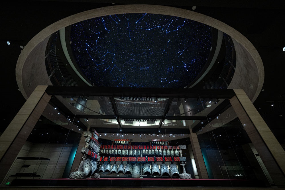 在湖北省博物館拍攝的隨州曾侯乙編鐘(2025年4月17日攝)。曾侯乙編鐘是我國(guó)出土數(shù)量最多、重量最重、音律最全、氣勢(shì)最為宏偉的一套編鐘,編鐘上的銘文是目前已知唯一的中國(guó)先秦官方音樂(lè)理論文獻(xiàn),以聲音和文字相互印證的方式保存了2400多年前人類的音樂(lè)記憶。