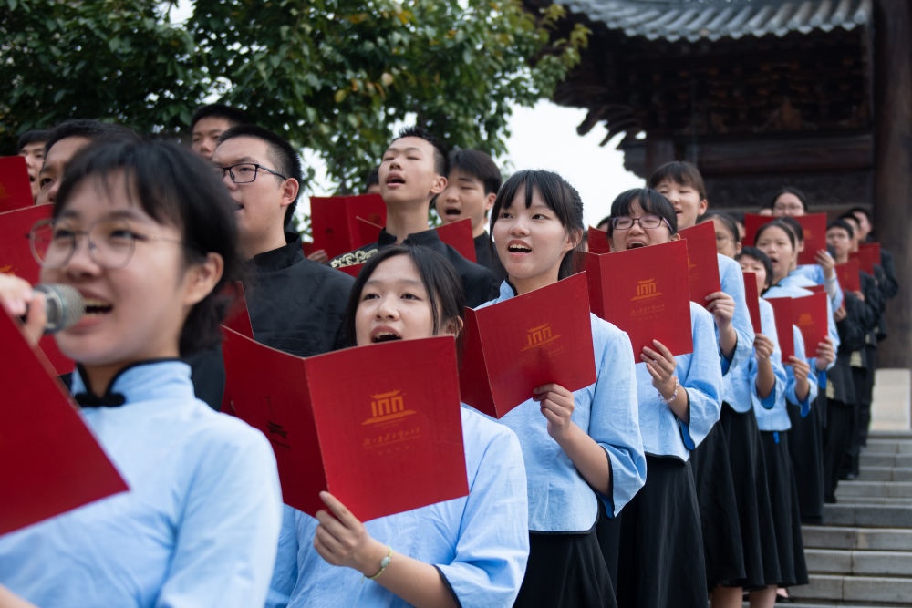2023年9月4日,武漢市武昌區(qū)2023年秋季開(kāi)學(xué)思政課在湖北省武昌實(shí)驗(yàn)中學(xué)開(kāi)講,這是學(xué)生在誦讀《惟楚有材賦》。這堂思政課以“傳承武昌古城千年文脈,爭(zhēng)做守正創(chuàng)新時(shí)代新人”為主題,通過(guò)“實(shí)景體驗(yàn)+課堂展示”的形式,講述武昌古城1800年文脈的歷史與傳承,為該校學(xué)生帶來(lái)一場(chǎng)沉浸式課堂體驗(yàn)。