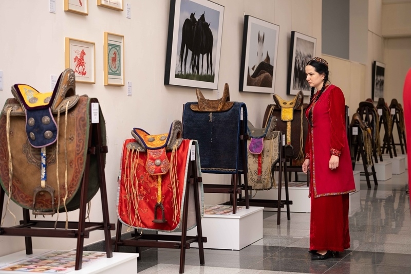 2025年6月3日,一名女子在土庫曼斯坦首都阿什哈巴德參觀“騏驥馳騁——2025中國(guó)馬文化展”。新華社發(fā)