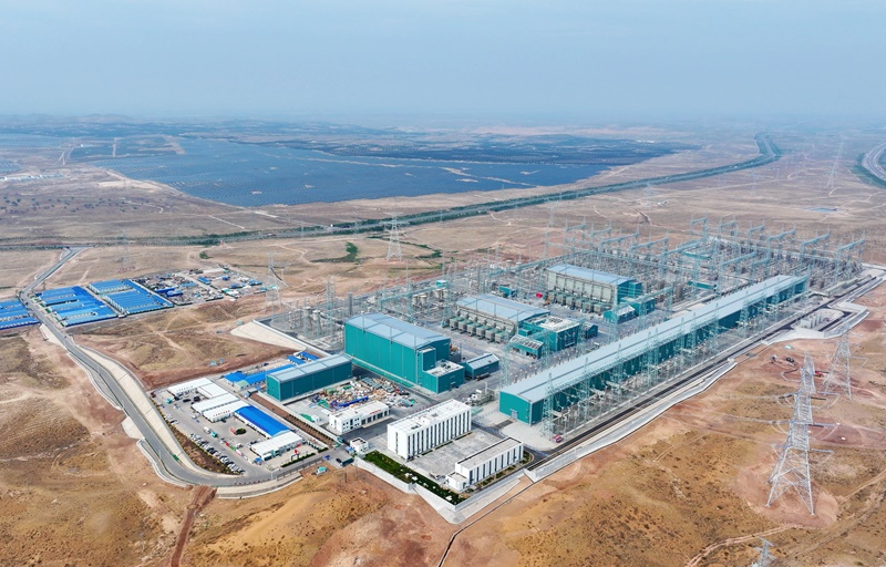 這是6月24日拍攝的“寧電入湘”工程寧夏中衛(wèi)市中寧換流站(無人機(jī)照片)。