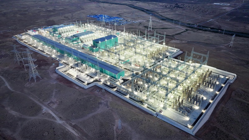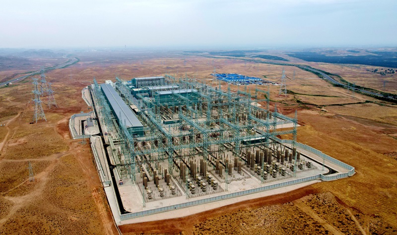 這是6月29日拍攝的“寧電入湘”工程寧夏中衛(wèi)市中寧換流站(無人機(jī)照片)。