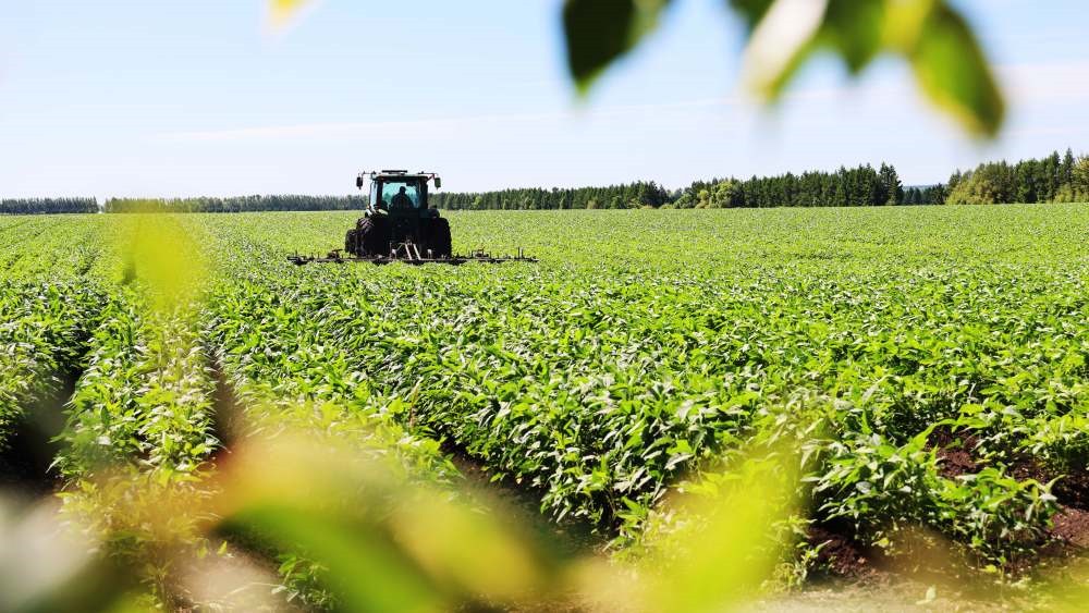 山東省東營市墾利區(qū)墾利街道種糧大戶袁訓(xùn)國撥開濃密的葉片,仔細查看大豆結(jié)莢情況?!霸蹅冞@地,以前種別的豆子一畝收300斤就不錯了,現(xiàn)在你看這長勢,畝產(chǎn)預(yù)計能超600斤!”