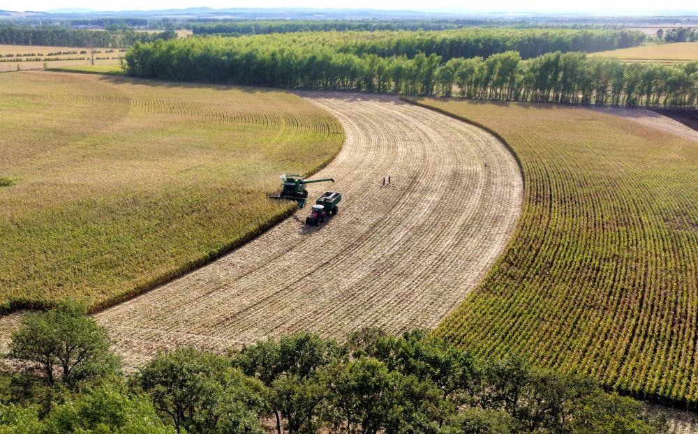 秋高云淡,黑龍江省七臺河市勃利縣的玉米地里一派繁忙景象。大型收割機往來穿梭,飽滿的玉米棒被自動精準(zhǔn)收入機身。脫粒后,金燦燦的玉米粒源源不斷涌入隨行的運糧車。