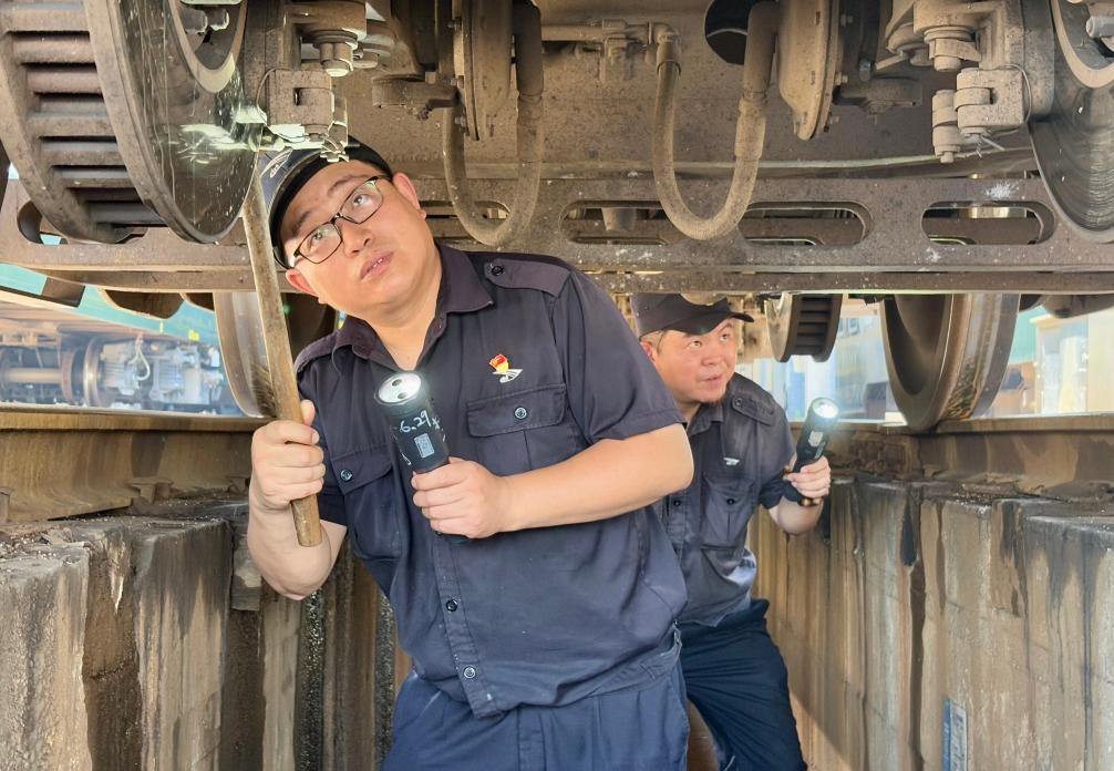 武鐵客車檢車員許立業(yè)正在巡檢。(受訪者供圖)