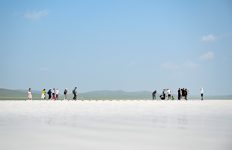 7月11日,游客在內(nèi)蒙古錫林郭勒盟太仆寺旗白音查干湖游玩。
