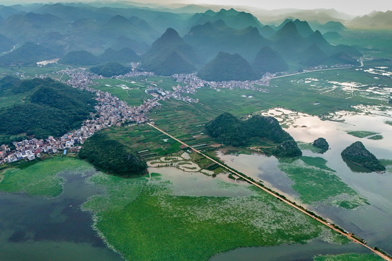 7月15日拍攝的普者黑景區(qū)風(fēng)光(無(wú)人機(jī)照片)。