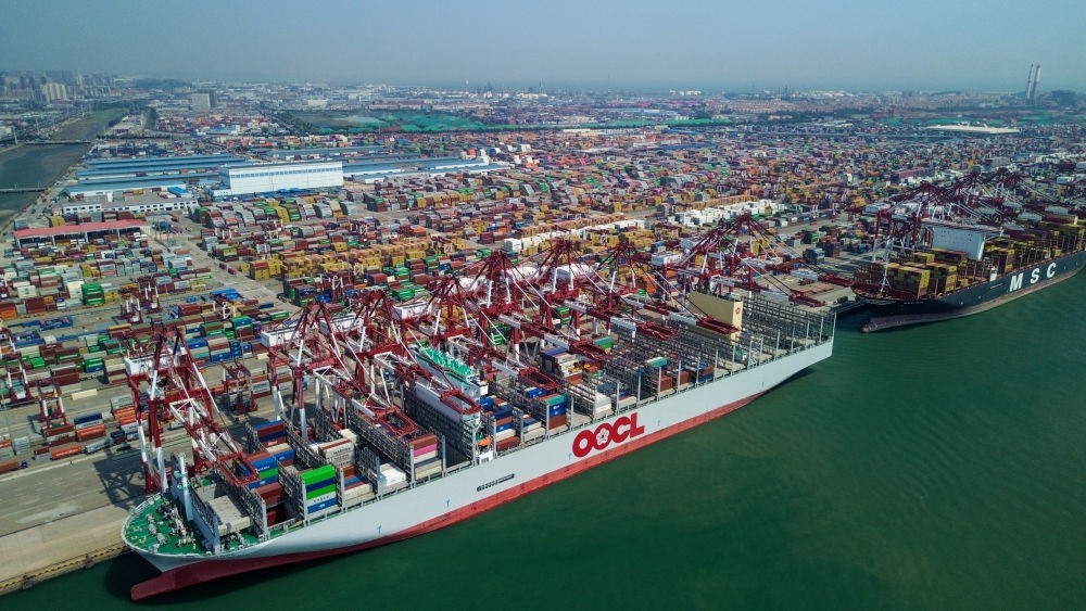 這是青島港集裝箱碼頭(2025年5月29日攝,無人機(jī)照片)。新華社記者 徐速繪 攝