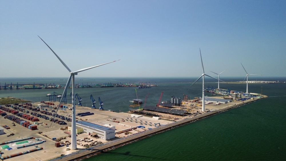 “4臺風(fēng)力發(fā)電機(jī)一年可發(fā)電約7000萬千瓦時(shí),足以覆蓋碼頭設(shè)備及??看暗挠秒娦枨?,冗余電量還能上網(wǎng)銷售?!鄙綎|省港口集團(tuán)濰坊港有限公司黨支部書記、總經(jīng)理孫超說,濰坊港已形成風(fēng)、光、氫“多能互補(bǔ)”的用能結(jié)構(gòu),每年可節(jié)省標(biāo)煤2.1萬噸,減少二氧化碳排放5.7萬噸。