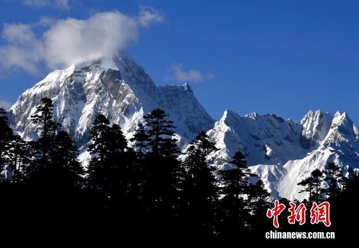 西藏林芝市波密縣原始森林與雪山風(fēng)光。波密縣地處喜馬拉雅山脈東段北麓,高山綿延,河流縱橫,素有“中國最美冰川之鄉(xiāng)”等美譽(yù)。中新社記者 李林 攝