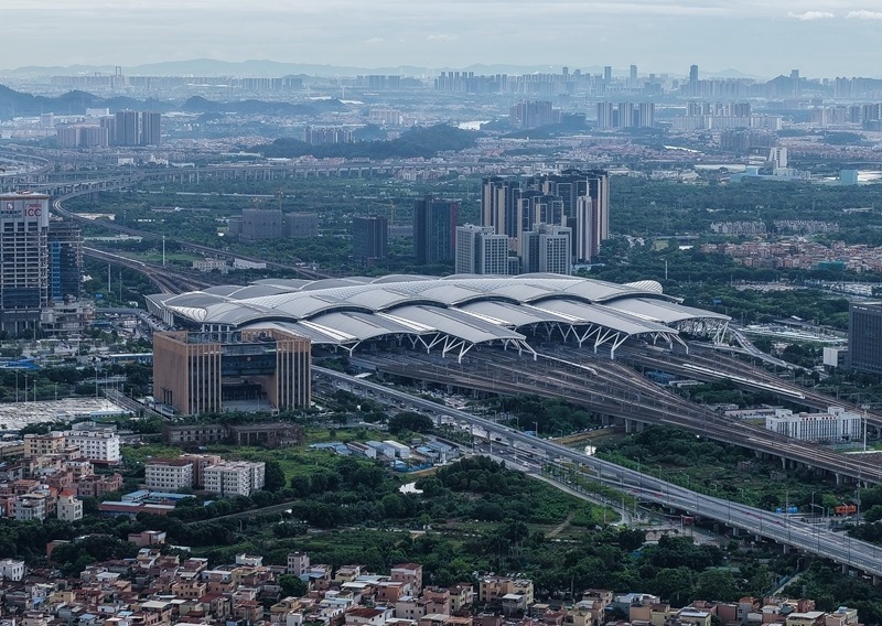 這是8月25日拍攝的廣州南站(無人機照片)。廣南聯絡線將從廣州南站導出,一站直達位于中心城區(qū)的廣州站。