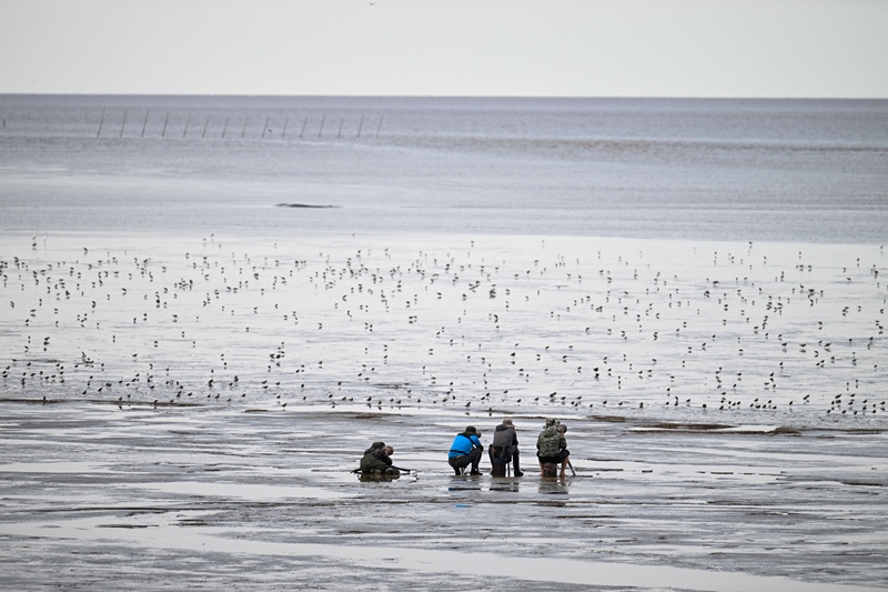 8月25日,攝影愛(ài)好者、鳥(niǎo)類(lèi)保護(hù)者在東臺(tái)條子泥濕地拍攝觀測(cè)鳥(niǎo)類(lèi)。